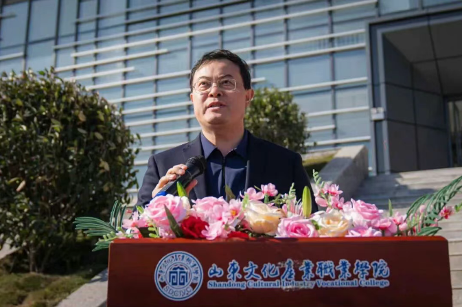 副市长徐东辉郑重宣布山东文化产业职业学院文体中心正式落成。